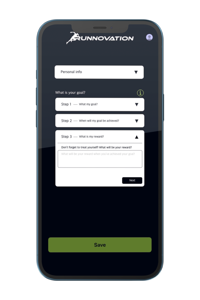 Runnovation encourages the user to stay motivated to run. Running and/or exercising are important building blocks in people’s lives.