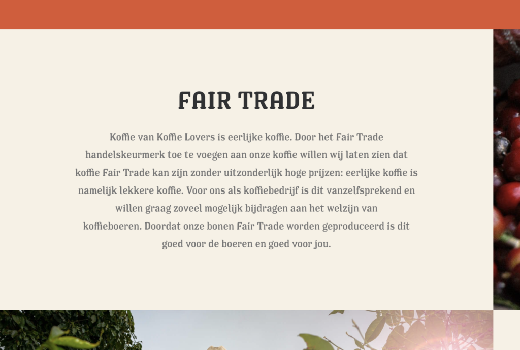 Besides informing (potential) clients about their brand, is selling coffee one of the most important parts on the website from Koffie Lovers.
